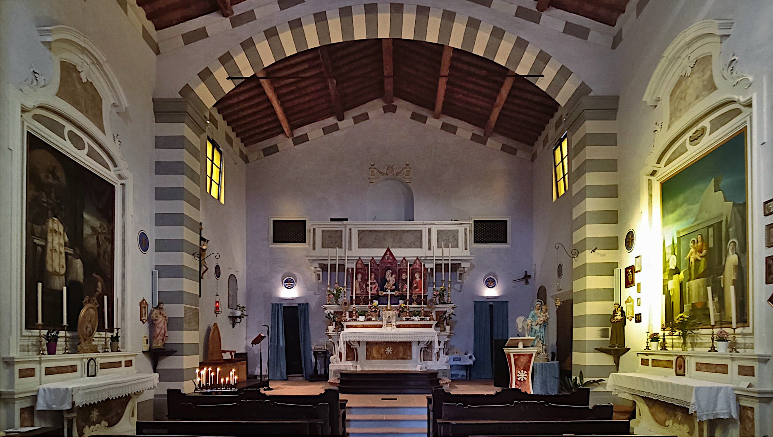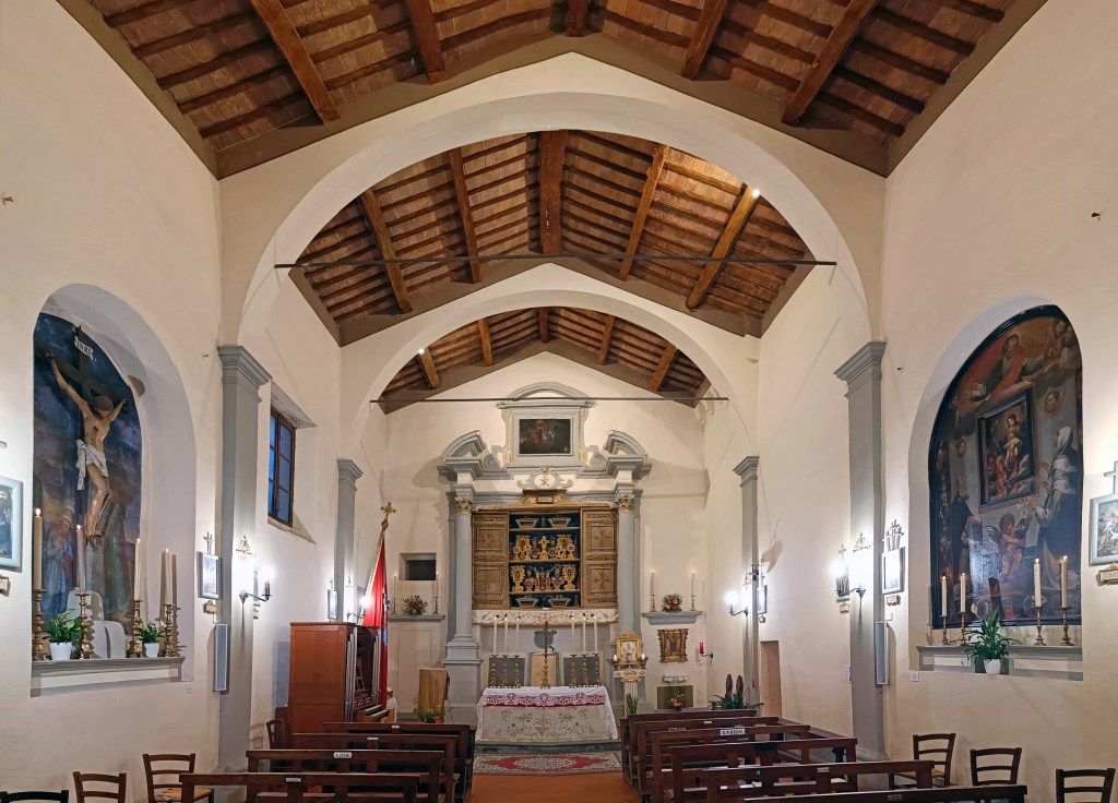 Esternamente, la pieve conserva ancora la facciata medievale con portale lunettato. All’interno è costituita da una navata unica di quattro campate, senza abside. La chiesa accoglie alcune opere d’arte: nella nicchia a metà della parete di destra, una tela attribuita allo scrofianese Gerolamo Cerretelli raffigurante la Madonna del Rosario (terzo quarto del XVII secolo); dirimpetto, un Crocifisso in legno dipinto e Dolenti a tempera, entrambi di scuola toscana e risalenti al XVII secolo. A ridosso della parete di fondo, al di sotto del Battesimo di Gesù della scuola di Rutilio Manetti (XVII secolo), entro un armadio con le armi dell’Ordine di Santo Stefano sono accolte trenta reliquie di altrettanti santi, che furono donate a inizio Trecento dal cardinale Riccardo Petroni; la domenica dell’Ottava di Pasqua è tradizione portarne una in processione per il paese nell’ambito della cosiddetta “festa dello Scricchio”, che trae il proprio nome dallo scricchiolare delle ante dell’armadio-reliquiario alla sua chiusura, considerato segno di buon auspicio.